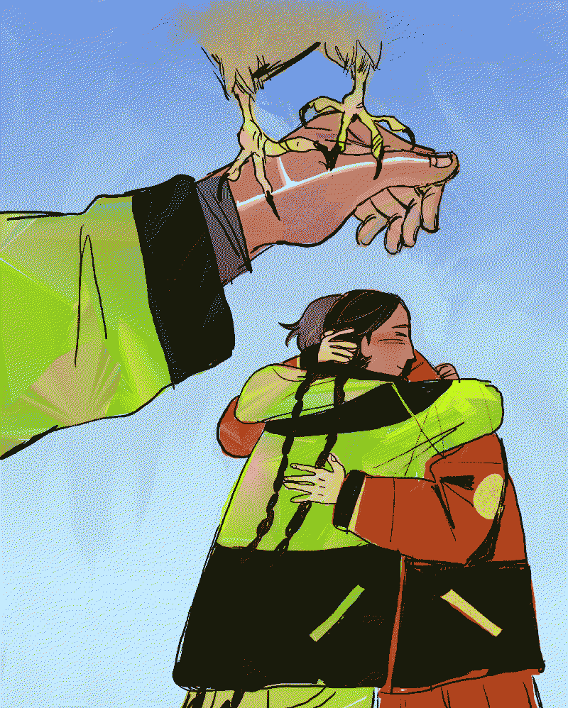 tochin is the only person who really enjoys peregrine's strange and stilted form of connection & conversation. their relationship is endearing but people think they're weird because they assume that in order for them to function as the symbiotic organism that they are there must be some degree of romantic feelings where there are none. their relationship is the result of my fascination with non-sibling sibling dynamics which i then just superimposed over my freakies. one must refer to charlie & leon, silna & goodsir, hunter & luz.